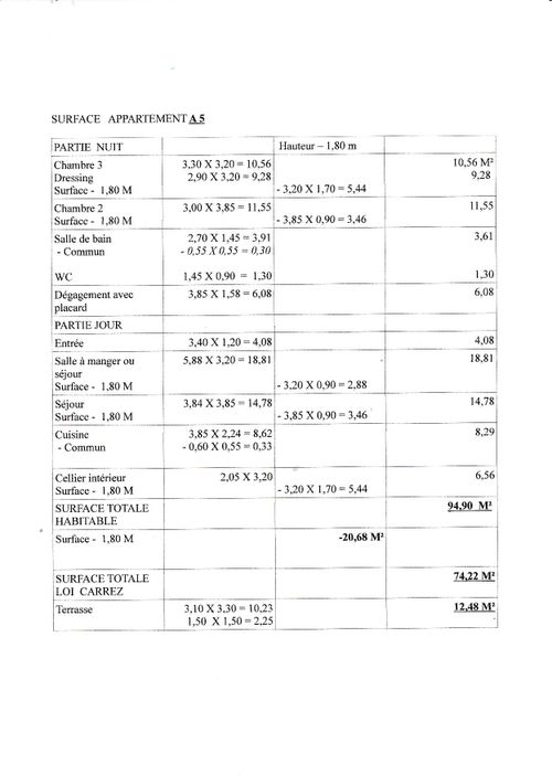 Appartement F4 situé au 2ème et dernier étage pour une surface de 94,90 m², 74,22 ( carrez) plus une terrasse de plus de 12,48 m².