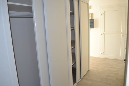 - 1 couloir avec un grand placard, une partie rayonnage et une autre penderie, portes coulissantes.