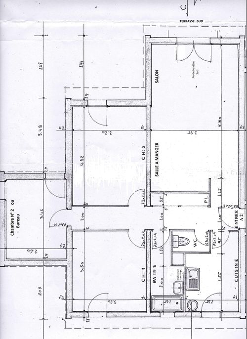 Appartement F4 de plein pied pour une surface de 80 m², très lumineux de part son exposition plein sud.
